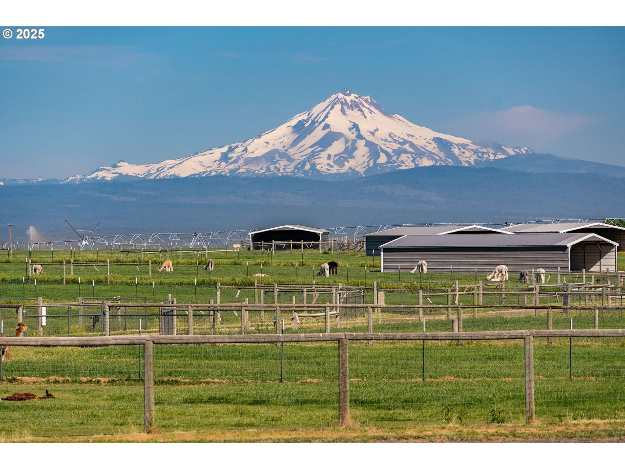 Mountain View Livestock Farm offers an exceptional opportunity to own a meticulously developed property designed for both animal care and operational efficiency. Located just outside of Culver, this 107.72+ acre farm is set against the scenic backdrop of the Cascade Mountains and less than an hour from Bend, with Portland just two hours away. The farm was designed with the flexibility to accommodate a variety of livestock. Improvements include a 3,400+ sq. ft. metal-framed home, a large multi-use barn with feed storage, indoor corrals, a dedicated vet room, and an apartment with an upstairs office offering expansive mountain views. A second barn with 8 stalls with runs, and a smaller 5-stall horse barn. The property also includes 13 livestock shade shelters and over 30 automatic, heated waterers. 106+ acres of NUID water rights, applied mostly by pivot and underground sprinklers. This is very well maintained farm, with many more details to see.