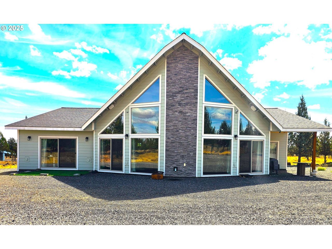 Amazing 6.8 acre property, move-in ready custom built home for full-time or vaca w/370' airstrip frontage to access 3R 2500' paved Airstrip OG00. This traditional home has every amenity imaginable so read the Amenities Sheet for full list. Total of 3290 sf w/3BR, 2.5 Bath, open concept/greatroom, chef's kitchen w/soft-close doors & drawers, all Bosch, matt-black SS appliances included in the sale, huge island, separate wet bar w/frig & storage, large dining area w/pellet stove, over-sized sectional w/large screen TV (Furniture & additional personal items negotiable outside of escrow). Large Primary suite w/2-walk-in closets, double sinks, custom walk-in tile shower & separate enclosed toilet area. 2 spare bedrooms w/large hall bath, tub/shower combo, double sinks & enclosed toilet, also separate half bath, loft which could also be 4th BR, sunroom and so much more. The 23w X 52l shop & mechanical building has a 16w X 11h roll up door and houses the solar system & 2500 gallon cistern. There is also a 11'4 X 19 bunkhouse for guests + 100's of sf graveled area for trailers and RV's. Outside shower and freestanding outhouse completed this exceptional piece of property. All appliances are included in the sales price. Furnishings and additional personal property are negotiable outside of escrow. Truly a must see.