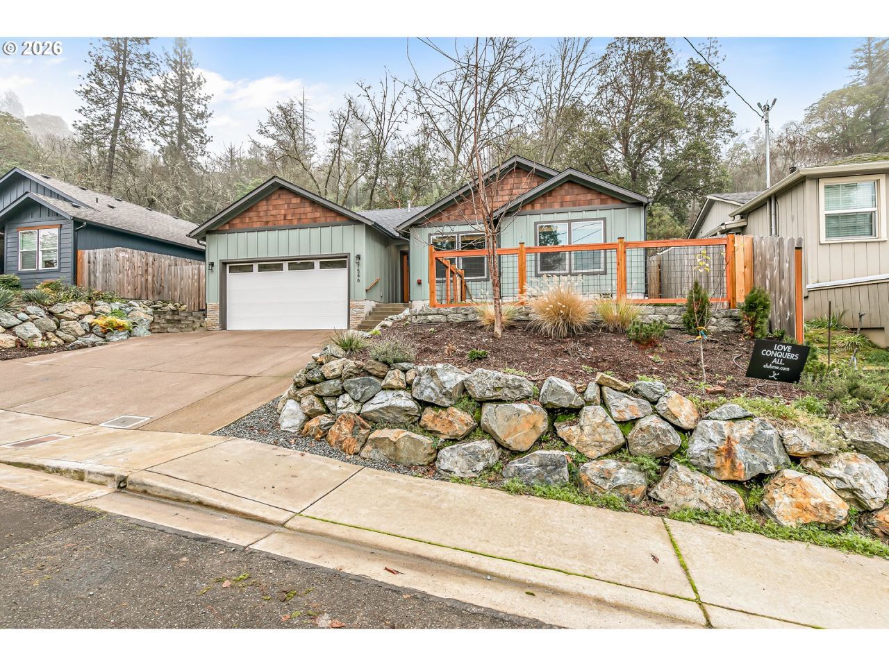 Built in 2022, this turn-key ready, one-level home offers 3 bedrooms, 2 bathrooms, and 1,399 sq ft of thoughtfully designed living space in a desirable South Grants Pass location. The open floor plan creates a bright and welcoming atmosphere, ideal for everyday living and entertaining. The modern kitchen features granite countertops, stainless steel appliances, ample cabinetry, and stylish black plumbing and light fixtures that add a sleek, contemporary touch. Contemporary finishes continue throughout the home, enhancing its clean and modern aesthetic. The primary suite provides comfort and privacy, while two additional bedrooms offer flexibility for guests, a home office, or hobbies. Outside, the low-maintenance yard offers an inviting outdoor space. Enjoy a walkable location with shopping, dining, and everyday amenities just steps away, making this move-in-ready home a perfect blend of modern design, functionality, and convenience in a beautiful one-level layout.