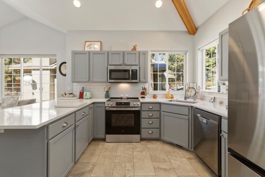 Must See - Running Y townhome remodeled with a fresh new look. Kitchen includes white quartz countertops, undermount stainless sink, breakfast bar with barnwood accents and upgraded appliances. Living area features a custom designed hutch, luxury plank flooring, and a stone fireplace surround. The primary bath is a showpiece with new cabinets, heated floors, double vanities with quartz countertops, a tiled step-in shower, and generous storage. Upstairs bathrooms have gorgeous new granite and Corian countertops and floor tiles. Other improvements include Net Zero heat pump and tankless water heater. The common area in the back offers additional privacy and expanded views. The newer composition deck has stairs to provide easy access to the backyard and large storage area underneath the home. The RY HOA maintains landscaping, exterior painting, roof replacement, and snow removal, while you enjoy HOA amenities such as the Sports and Fitness Center and paved walking trails.